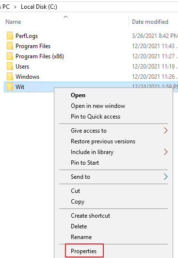 폴더를 생성 - 우클릭 - Properties