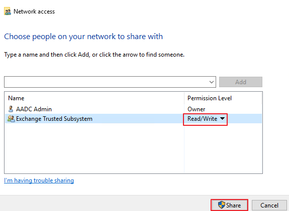 Read/Write 권한을 부여한 뒤, Share