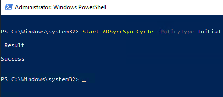Start-ADSyncSyncCycle -PolicyType Initial