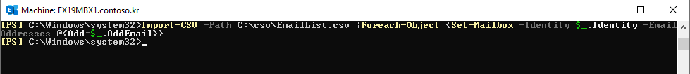 이럴 때는 Exchange Powershell 명령어로 일괄 작업을 진행합니다.