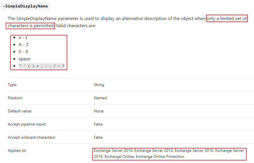 조직 외부로 발송시에는 다른 이름으로 표시할 수 있는 설정이 SimpleDisplayName 속성입니다.