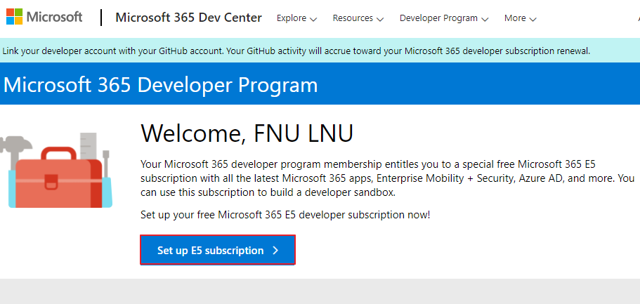 MS에서도 Microsoft 365 Developer Program 을 제공합니다.