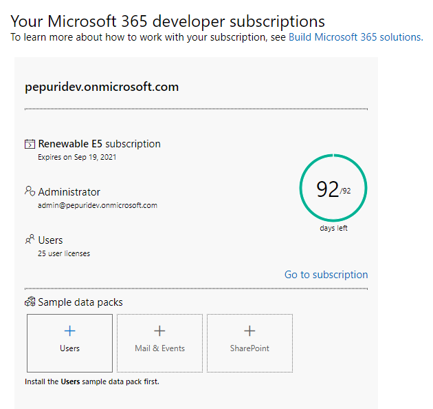 MS에서도 Microsoft 365 Developer Program 을 제공합니다.