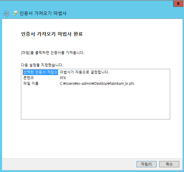 발급 받은 인증서를 각각의 Exchange 서버에 설치 합니다.