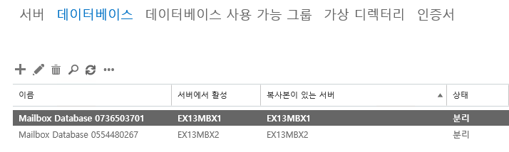 처음 설치시 생성되는 DB에는 System Mailbox가 존재하므로 삭제하면 안됩니다.