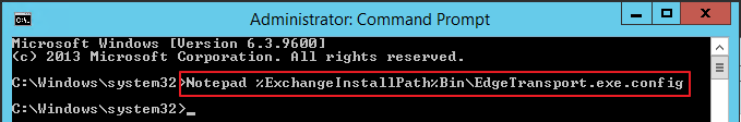 Notepad %ExchangeInstallPath%Bin\EdgeTransport.exe.config
