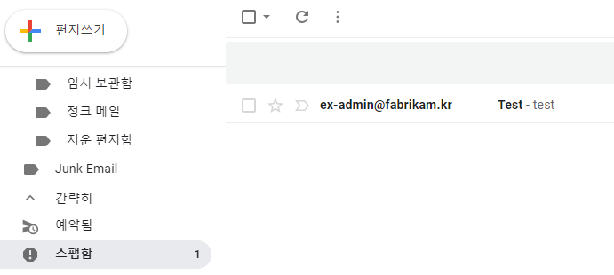 OWA 페이지( https://localhost/owa )에 접속 한 뒤, Gmail에 메일 발송을 시도합니다.