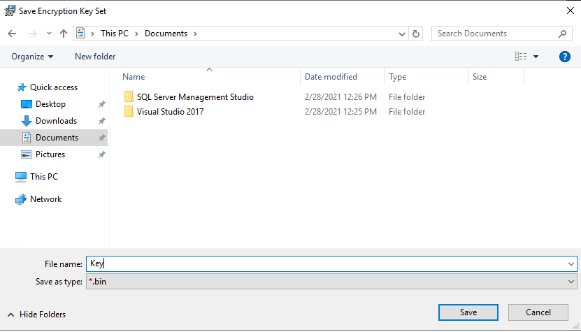 암호화 키에 대한 백업 메시지 - OK
