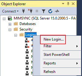 Security - Logins -우클릭 - New Login
