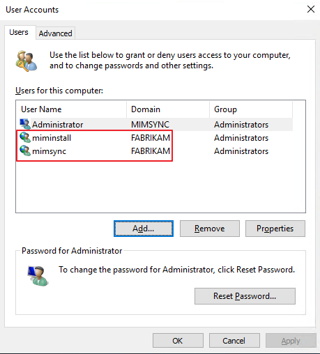 Add-ADGroupMember -identity MIMSyncAdmins -Members Administrator