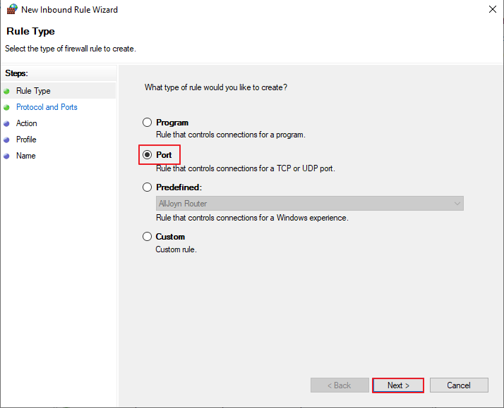 Enable firewall rules for inbound RPC Communications - Check - Next