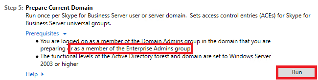 Enterprise Admins Group 권한이 요구됩니다. - Run