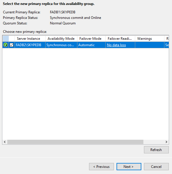 Always on High Availability 메뉴로 이동하여 Failover
