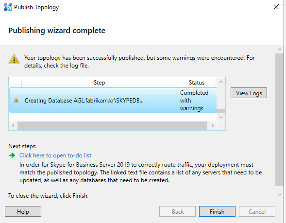 비즈니스용 Skype 서버에서 새 토폴로지 만들기 및 게시