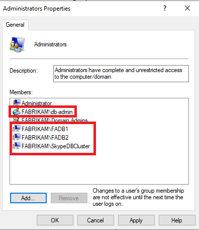 *Domain Admins 가 필요한 이유는 AD에서 Cluster 개체 생성시 필요합니다. 보안상의 목적으로 Domain Admins 를 임시 부여할 수 없다면, Cluster 구성시 아래의 글을 참고하여 권한 부여 및 개체 생성을 진행합니다.