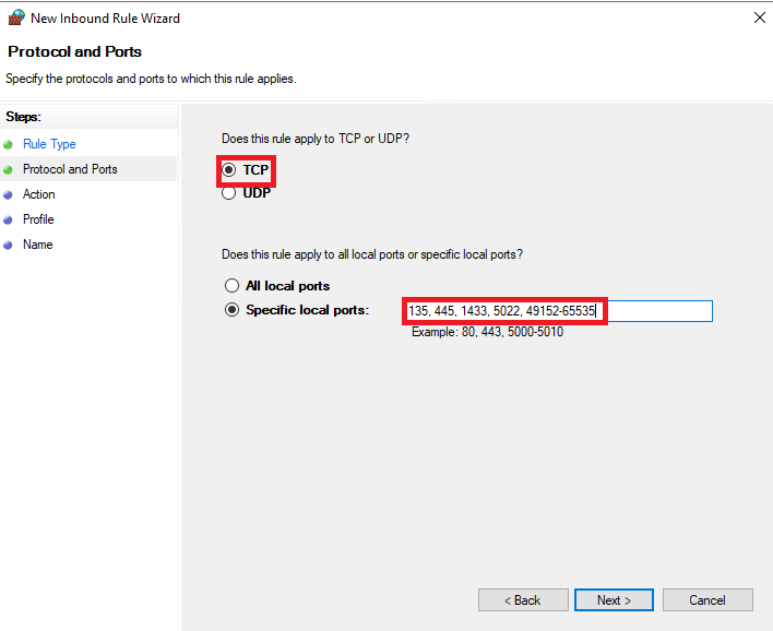 TCP Dynamic Ports 는 전부 제거 합니다.