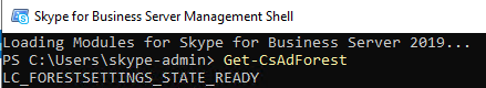 Get-CsAdForest 결과가 LC_FORESTSETTINGS_STATE_READY 이면 정상