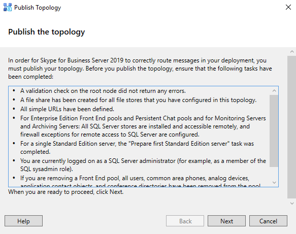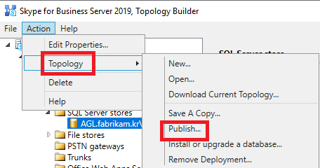 비즈니스용 Skype 서버에서 새 토폴로지 만들기 및 게시