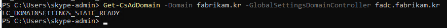 Get-CsAdDomain -Domain fabrikam.kr -GlobalSettingsDomainController fadc.fabrikam.kr