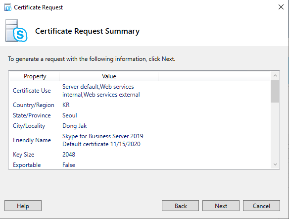 Default certificate 선택 - Request