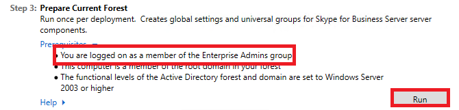 이번 단계에서는 Enterprise Admins Group 권한이 필요합니다. Run 진행