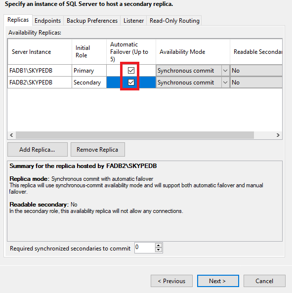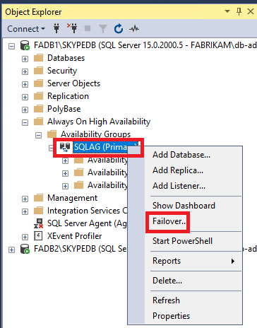 Always on High Availability 메뉴로 이동하여 Failover