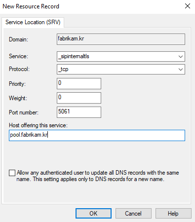 [단계5] Create DNS records for Skype for Business Server