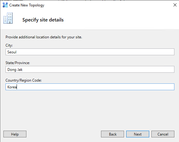 Site 정보 입력