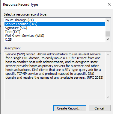 Service Location (SRV) 를 선택합니다.