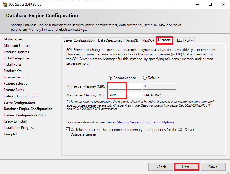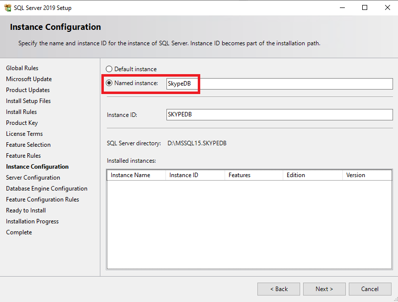 기능 선택시 Database Engine Services 를 선택 - Instance 경로는 D드라이브로 선택하였습니다.