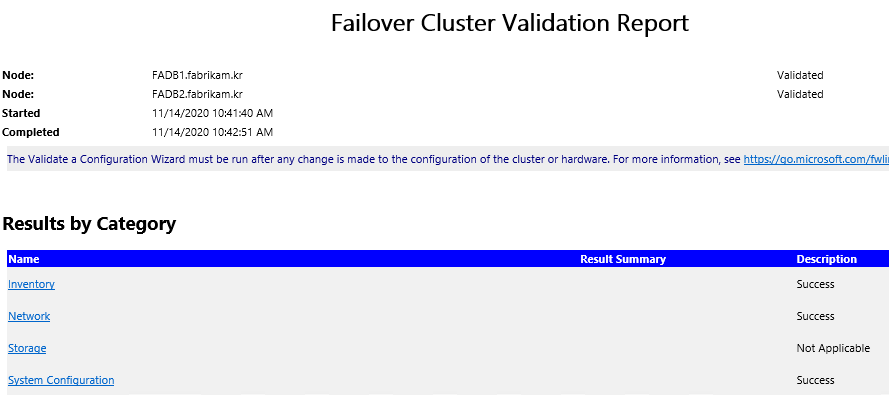 *Domain Admins 가 필요한 이유는 AD에서 Cluster 개체 생성시 필요합니다. 보안상의 목적으로 Domain Admins 를 임시 부여할 수 없다면, Cluster 구성시 아래의 글을 참고하여 권한 부여 및 개체 생성을 진행합니다.