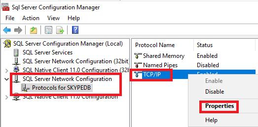 SQL Server Network Configuration - Protocols - TCP/IP - Properties