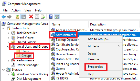 위치를 로컬로 지정한 뒤, Administrators 그룹을 추가합니다.