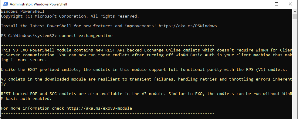 그래서 Exchange Online Powershell에 접속하여 확인해보겠습니다.