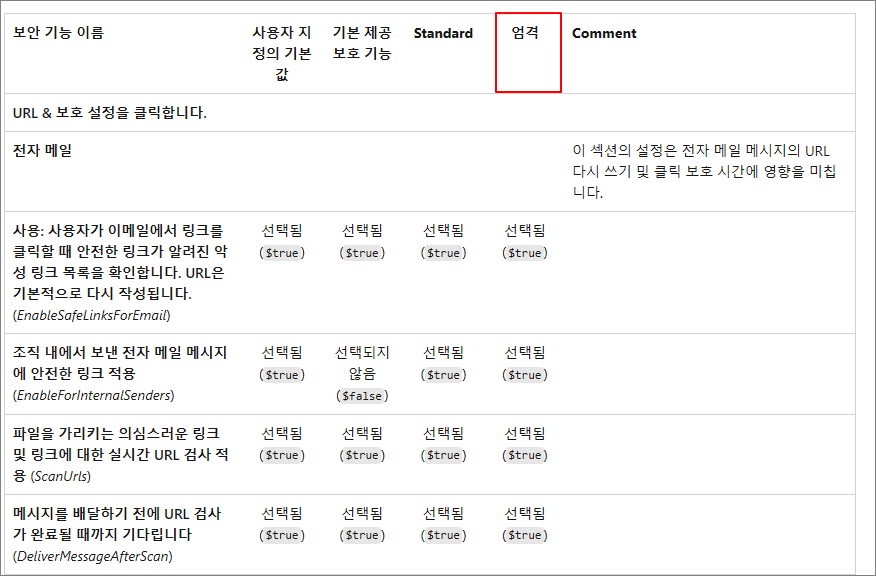 아래의 설명과 같이 안전한 링크는 MDO 라이선스가 테넌트에 구매되면 모든 사용자에게 적용되는 것이 기본 값입니다.
