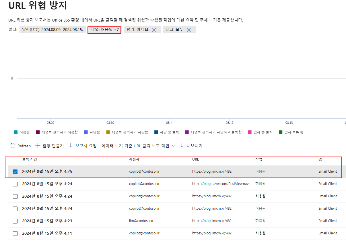 작업 필터를 허용됨까지 포함하면 아래와 같이 기록을 확인할 수 있습니다.