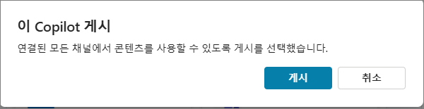 다음에는 IIS 기반 사이트에 생성한 Copilot 챗봇을 게시 하는 방법에 대해서 다루겠습니다.