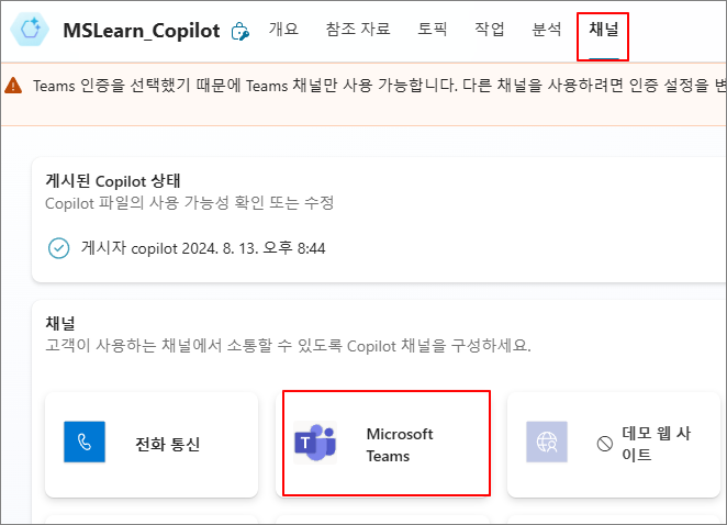 상단의 채널 -> Microsoft Teams