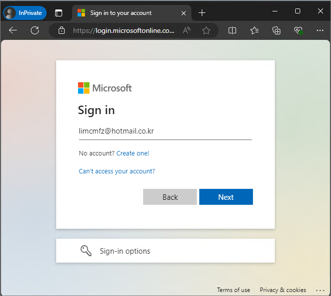 Edge에서 개인 계정으로 로그인 시도
