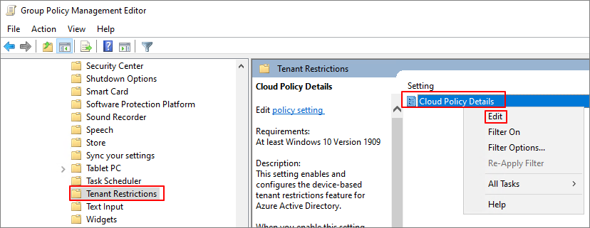 Computer Configuration > Administrative Templates > Windows Components > Tenant Restrictions