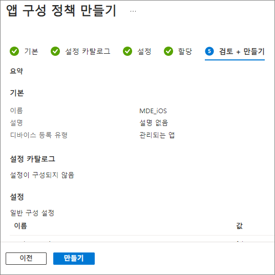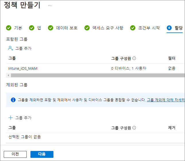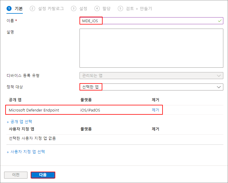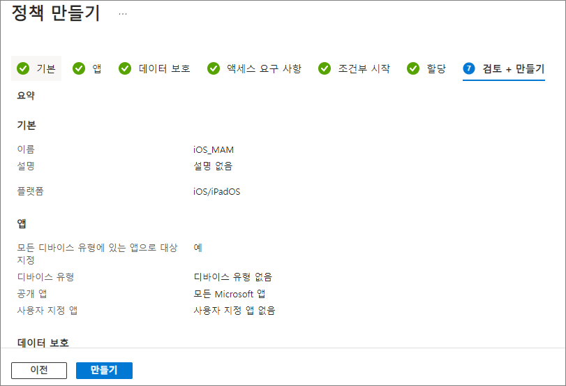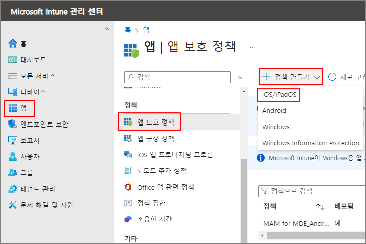 앱 -> 앱 보호 정책 -> 정책 만들기 -> iOS/iPadOS