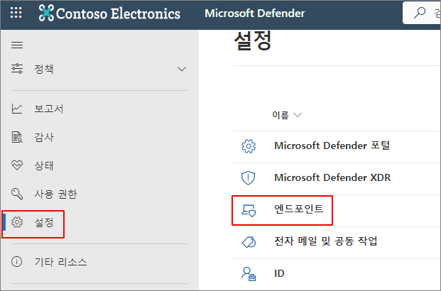 설정 -> 엔드포인트