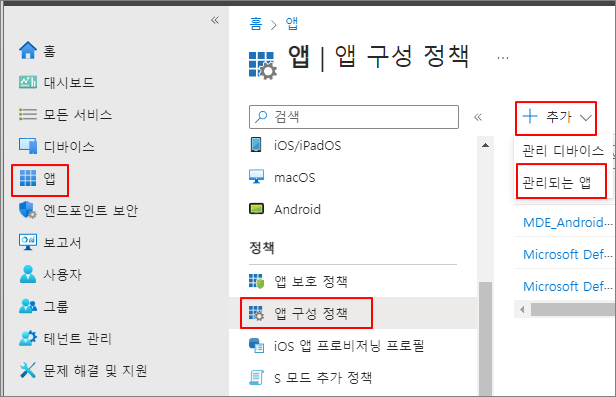 앱 -> 앱 구성 정책 -> 추가 -> 관리되는 앱