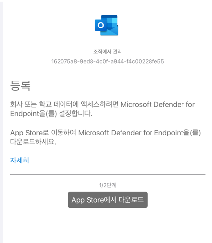 배포가 완료되면, 아래와 같이 MAM 정책에 의해서 MDE 설치를 요구합니다.