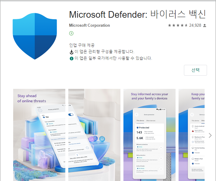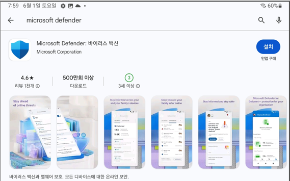 우선 Android에서 별도의 설정 없이 Defender App을 설치해보겠습니다.