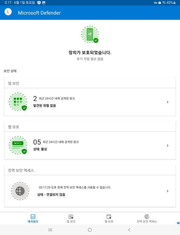 백그라운드에서 보호 상태로 동작되는 것을 확인할 수 있습니다.