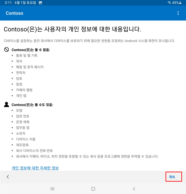 Android의 등록방식은 아래와 같이 크게 3가지가 있으며, 방금처럼 단순히 로그인한 방식은 Unmanaged BYOD입니다.