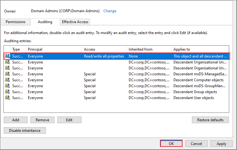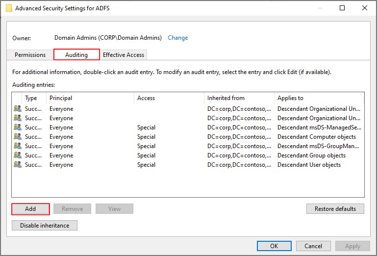 5. Enabling auditing on an ADFS object (ADFS 구성시)