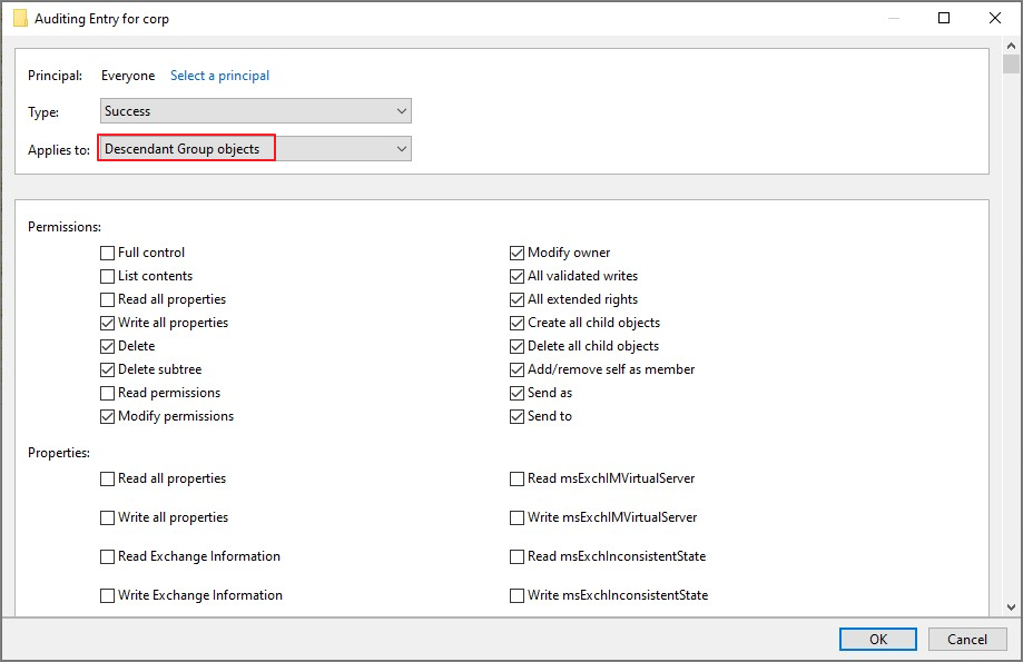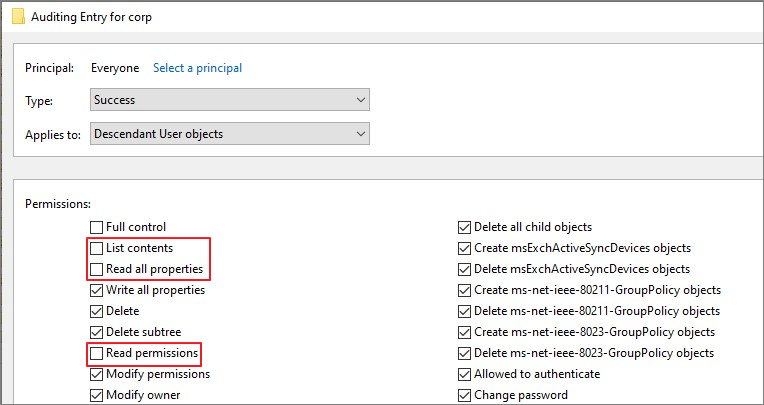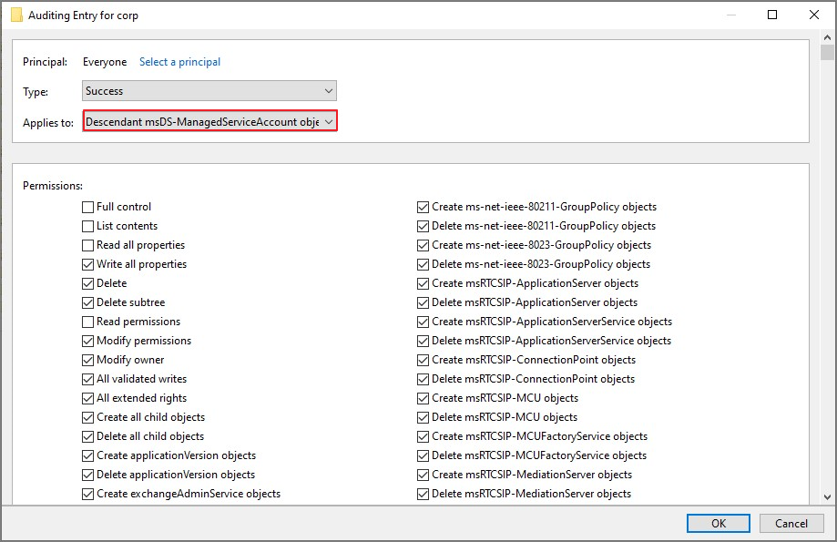 위에서 진행한 것과 같은 방식으로 Descendant Group object, Descendant Computer object, Descendant msDS-GroupManagedServiceAccount Objects, Descendant msDS-ManagedServiceAccount Objects 진행