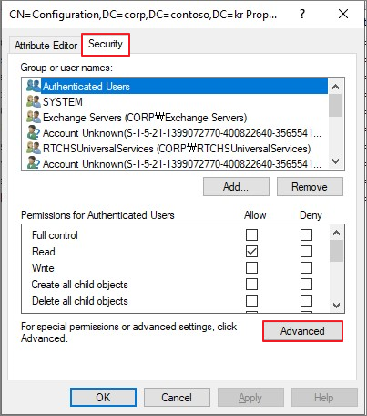 Deleted Objects Containers에 필요한 읽기 권한을 부여